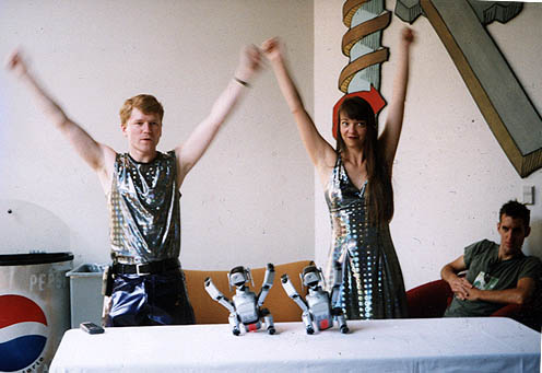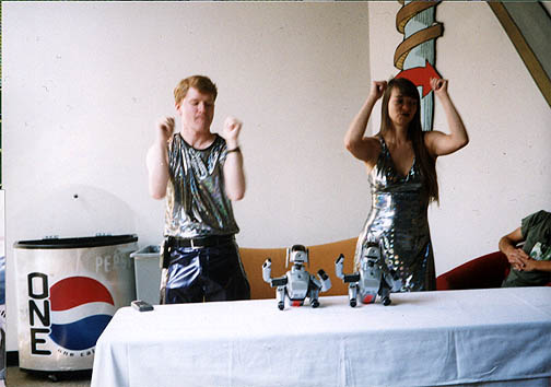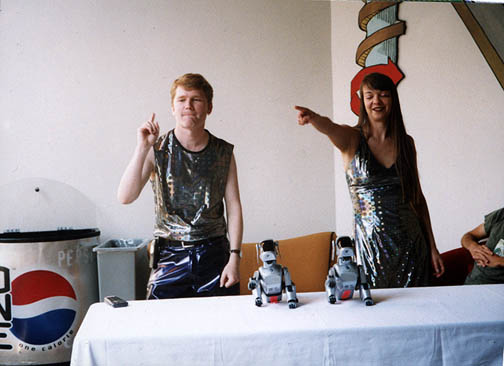 OK, these pictures are actually of my friends Dave and Peggy at the Aibo expo. I juts posted them here to embarrass them for going out in public wearing matching outfits. Not tomention doing a synchronized dance routine.
